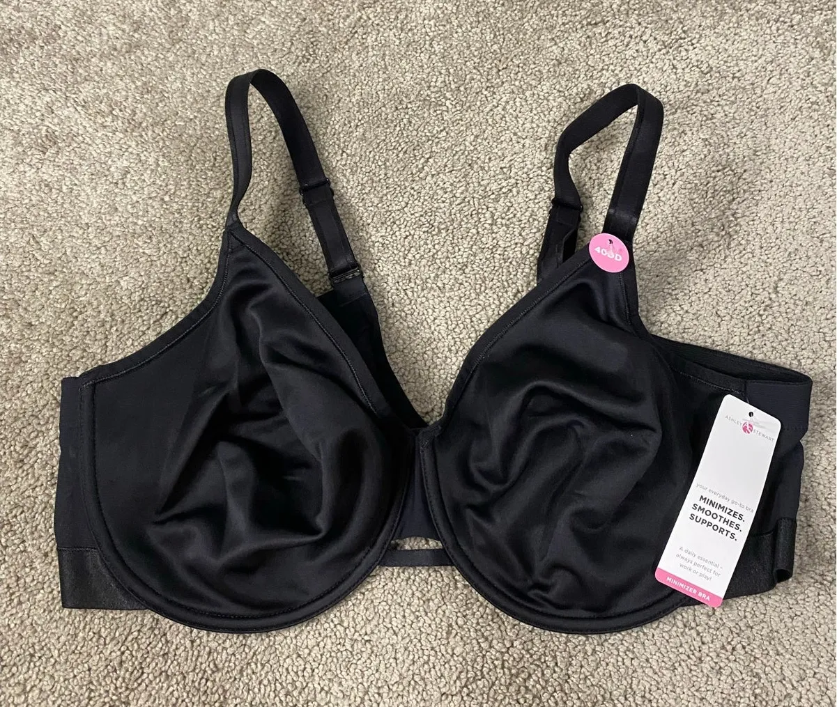 This is a brand new Ashley Stewart Minimizer Bra in black, size 40DD. It's designed to provide excellent support and a smooth silhouette. Perfect for everyday wear or special occasions. Get the support you need with this beautiful bra! It's new, never worn, and ready to find a new home. Grab it now!