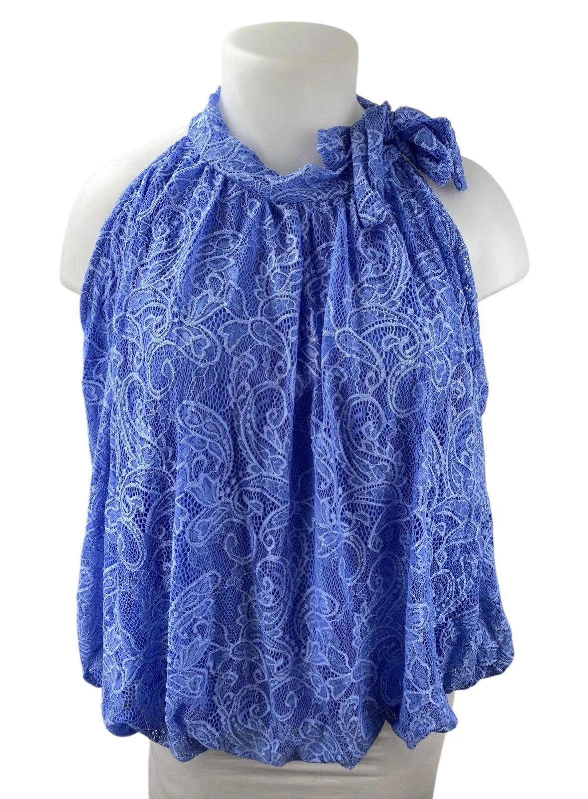 NEW Ashley Stewart Women's Blue Floral Lace Paisley Sleeveless Blouse Top 2224 Size: 22/24 Condition: New With Tags Chest: 46” Length: 27” *Measurements are taken lying flat. We double the flat lay measurements of the chest. ** If displayed on a mannequin, the size is small; if on a plus-size mannequin, the size is extra large.