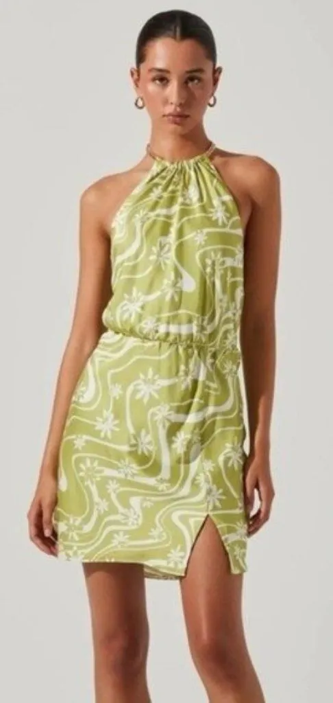 ASTR The Label Quinta Retro Floral Halter Dress, size M in Celery Floral. $118 new without tags, ne... Show more