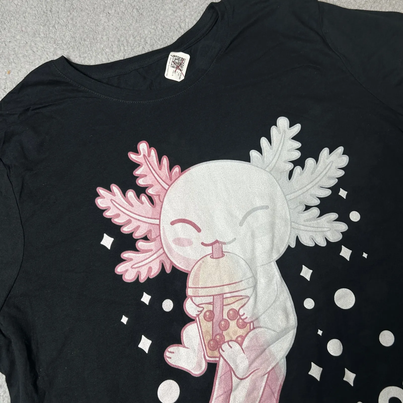 Color: Black Material: 100% Cotton, Cotton Neckline: Crew Neck Sleeve Length: Short Sleeve Features: Graphic Print, Lightweight, Casual Character: Axolotl Condition: New w/o Tags Keywords: axolotl t-shirt, boba tea shirt, kawaii shirt, cute graphic tee, womens 3xl shirt, black t-shirt, axolotl boba, graphic tee, plus size t-shirt, novelty shirt, cartoon shirt, anime shirt, japanese style, casual top **Fast Shipping / Smoke Free Home**