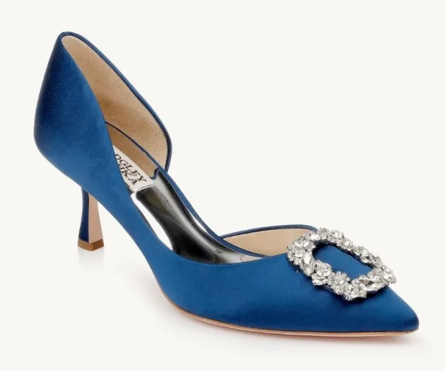 New without box Badgley Mischka Fabia D’Orsay heels with crystal buckle. Size 5.5. Color is Navy (beautiful royal blue). These have never been worn but there is VERY minor scuffing on the leather sole. No box. Specifications: Heel Height: 2.56” (65mm) Kitten Heel Pointed Toe Material: Silk Satin Leather Bottom Designed to provide a timeless silhouette with an elegant twist, this stunning d’orsay is sure to make a lasting impression. The pointed toes give this classic shoe a sleek, streamlined look, while the delicate crystal buckle adds an element of glamour and decadence. Product Features: In a pointed toe and mid-heel silhouette, the Fabia is your go-to shoe when you want to make a statement. The shapely heel adds extra height and elegance, while a silk satin upper ensures it feels as fabulous on your foot as it looks. A crystal accented toe buckle lends just the right amount of bling to the look, turning ordinary into extraordinary. Non smoking home