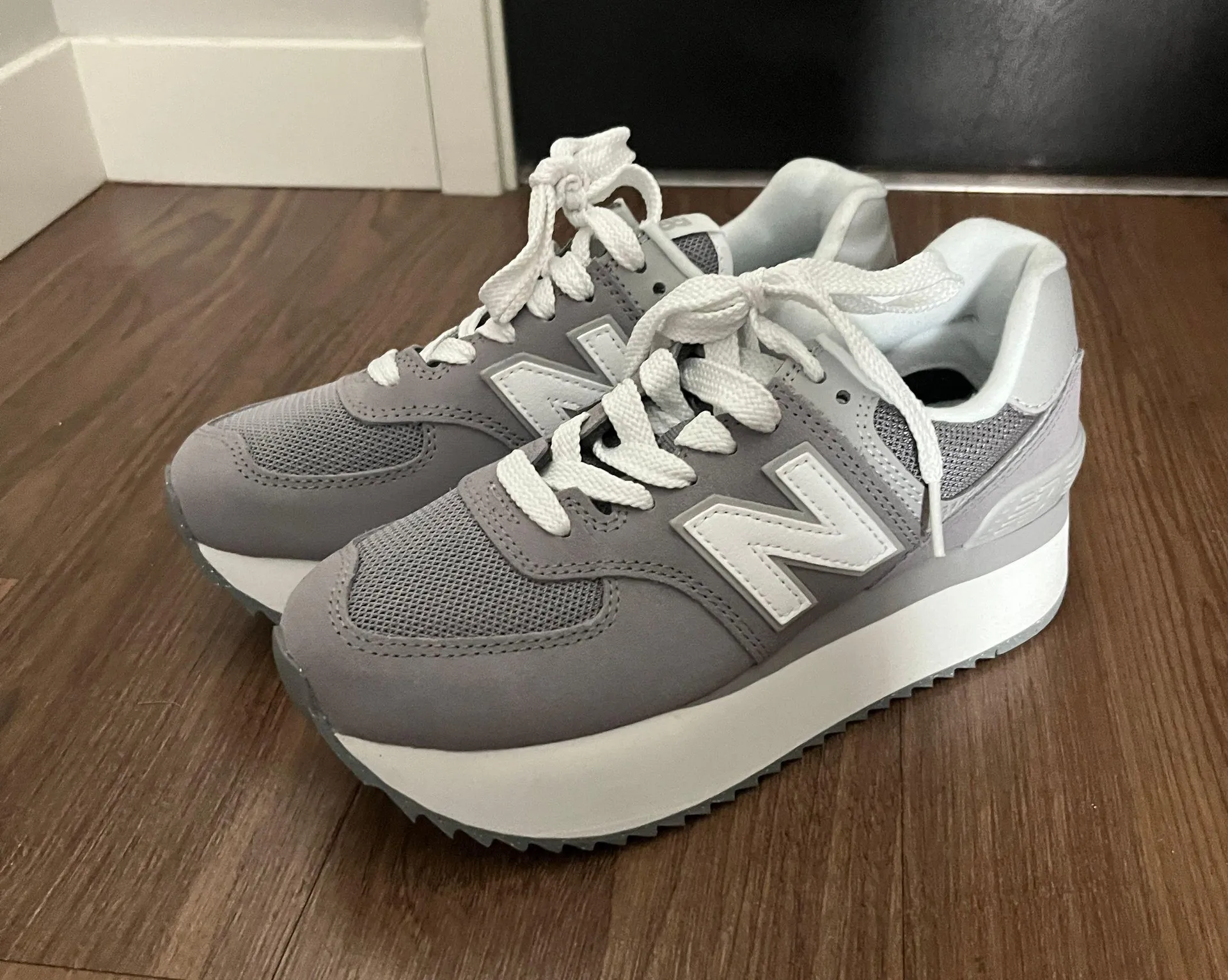 Worn once!! Gray platform New Balance sneakers. Super cute and I love this style, I just reach for m... Show more