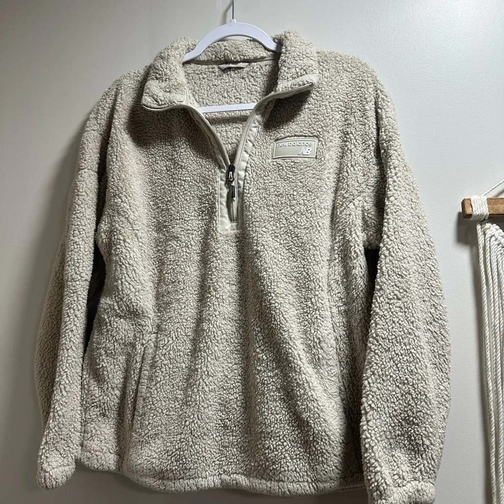 Warm sherpa hoodie with half-zip. Ideal for layering. Casual and stylish.