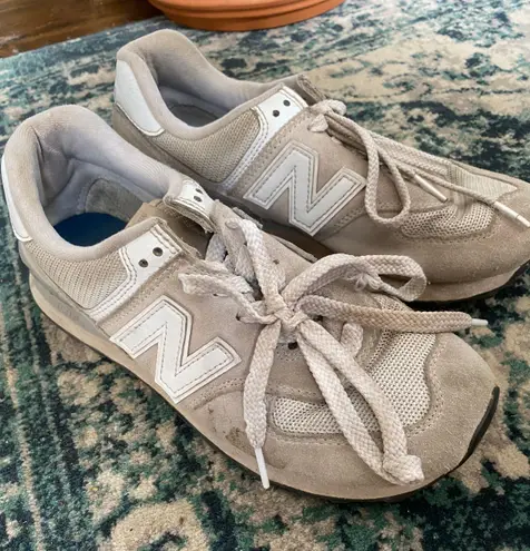 Super cute neutral new balance sneakers in good condition!! They were well loved but they still have... Show more