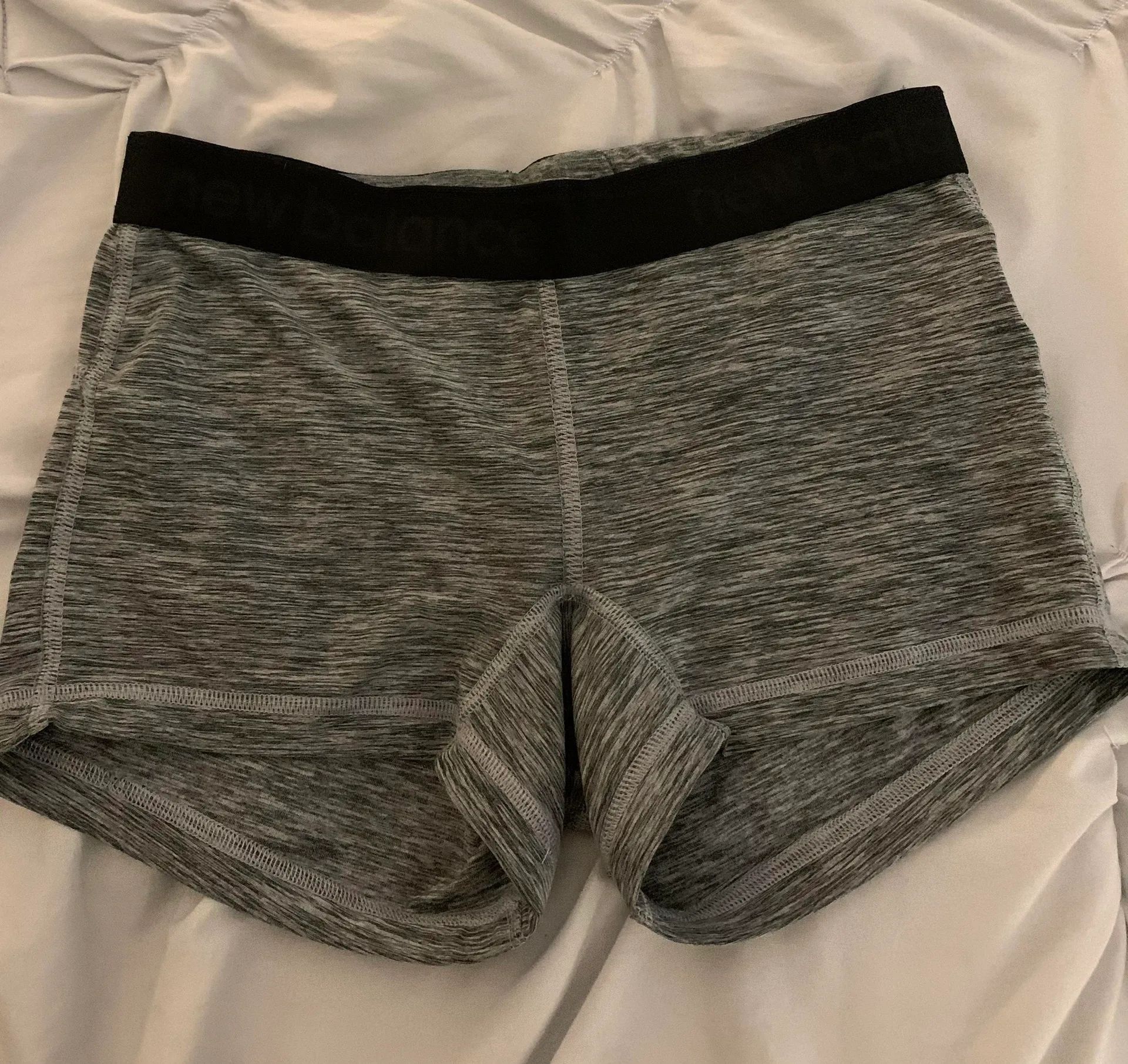 brand: New Balance style: spandex size: small condition: gently worn color: gray with flecks of dark... Show more