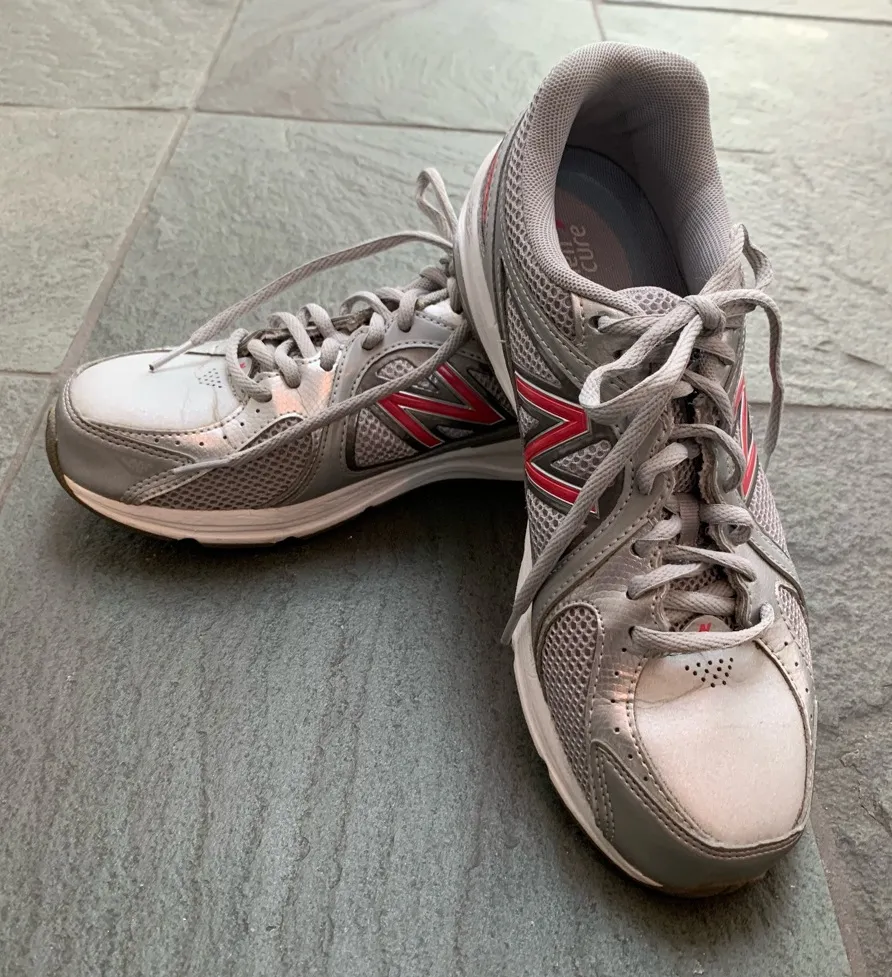 New Balance Susan G. Komen walking athletic sneakers. Breast Cancer awareness. Silver gray with pink... Show more