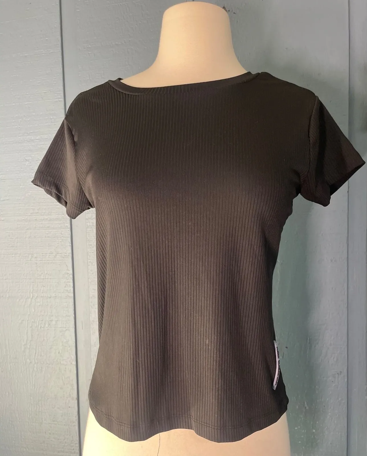 Elevate your activewear with this New Balance black ribbed athletic t-shirt. Designed for comfort an... Show more