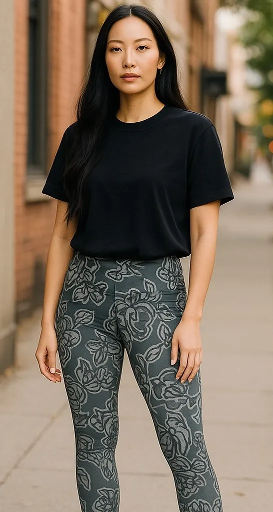 New Balance Womens Leggings Sz L Olive Green Black Floral Print Thick GENERALLY SHIP SAME OR NEXT D... Show more