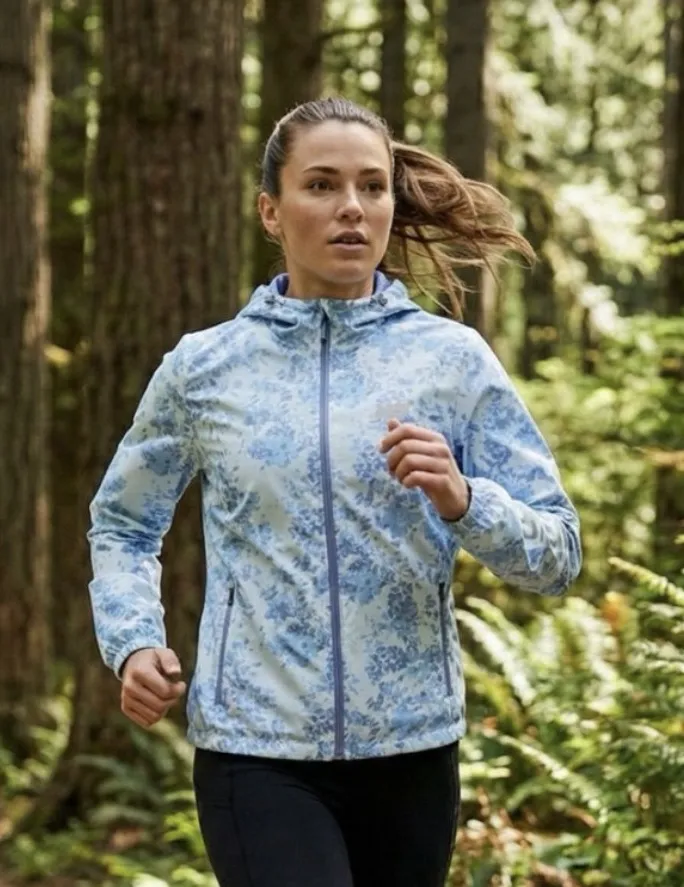 Obsessed with this dreamy windbreaker! This New Balance jacket features the cutest blue and white wa... Show more