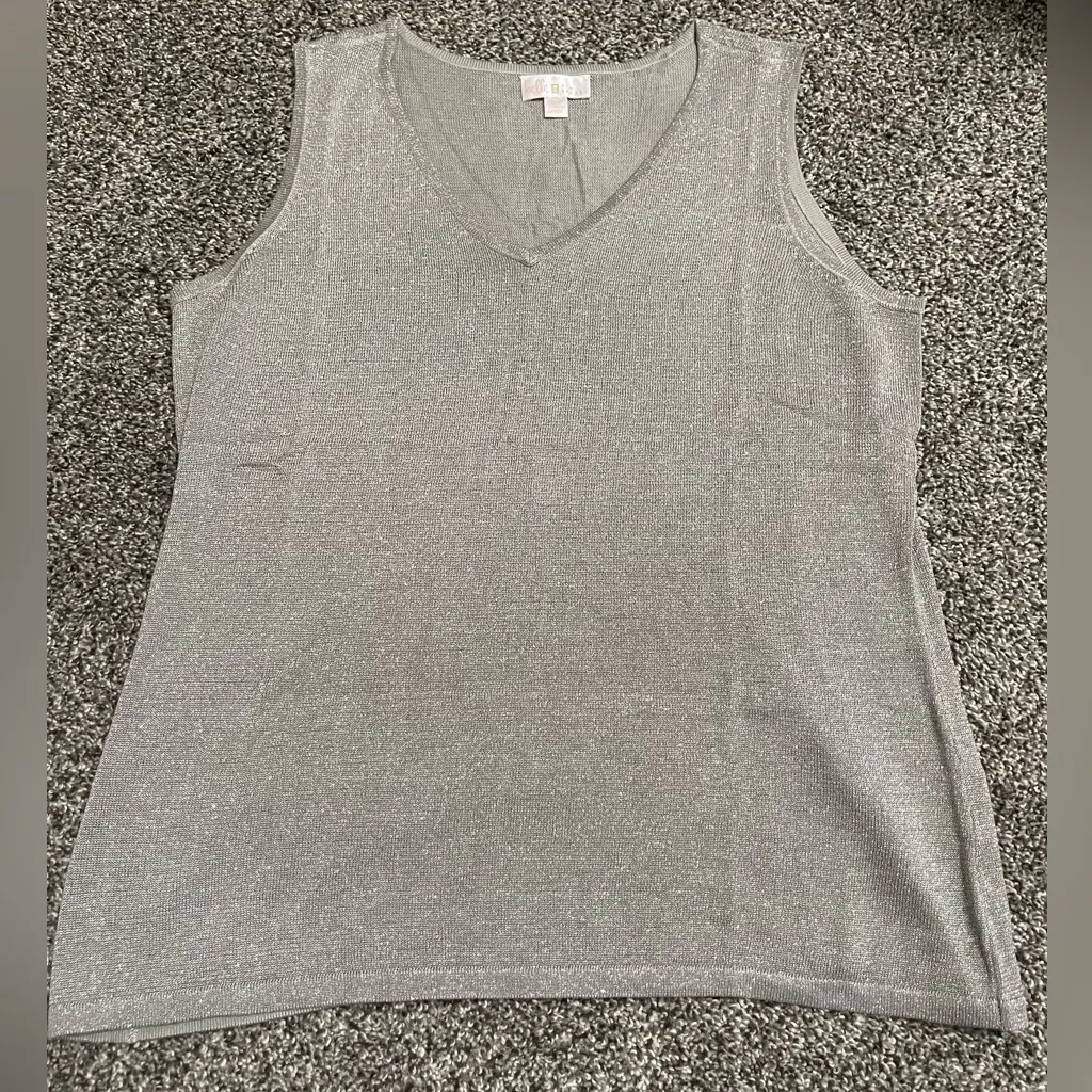 New in bag (opened for pics) Belle by Kim Gravel Gray Sparkly Sleeveless tank top V Neck (approxi... Show more