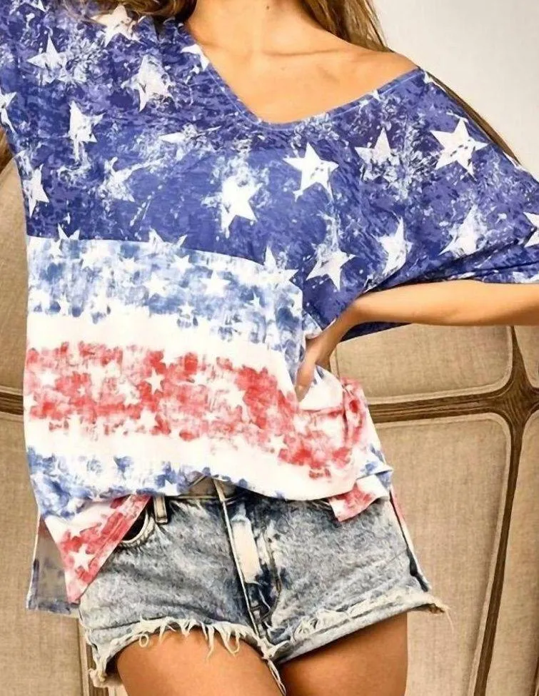 New BiBi USA red white & blue stars & stripes short Sleeve v neck Top Small - $40 - From Lydia