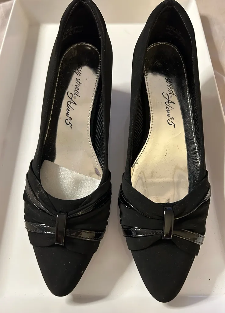 NO BOX Origin Imported Sole material Rubber Outer material Faux Suede Closure type Pull-On About this item 1.75" Block heel, Contemporary underslung block heel Easy Flex outsole for all day comfort On trend ruched overlay bow detail Fashionable Almond toe Padded insole Description A striking ruched overlay bow detail ensures that the Millie by Easy Street will be a fashionable addition to your wardrobe. Designed with a contemporary underslung block heel, Easy Flex outsole, and generously padded insole give this contemporary style all the fashion and comfort you need to take on your day or night.