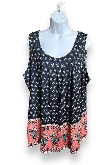 New with tags Bloomchic Women's Plus Bandana Print Round Neck Tank Top Navy with Pink Accent o... Show more