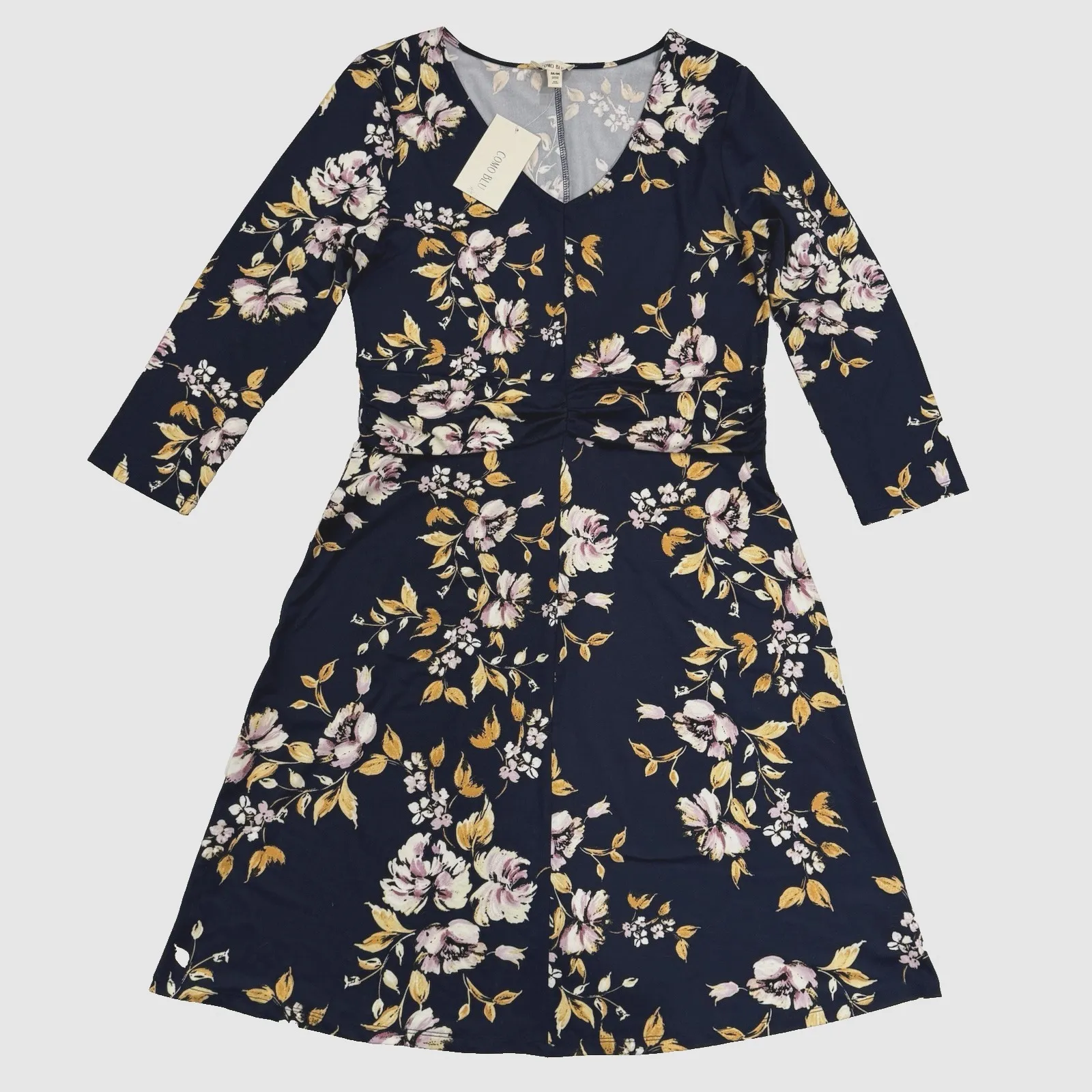 New Como Blu Blue Floral Dress Women M 8 10 V Neck Fit Flare A Line 3/4 Length Sleeve Knee Length Condition - New with Tags - no stains, holes, or issues noted. Please see all photos as they are part of the description. Brand: Como Blu Style: V Neck Fit and Flare Dress Women's Size: Medium / 8 - 10 Color: Blue with White, Yellow and Dark Pink Print: Floral Pull On Styling V Neck Ruched Elastic Waist 3/4 Length Sleeves Knee Length Polyester / Spandex Made in China Machine Wash Style Profile: Party, Cocktail, Work, Date Night, Special Occasion Measurements - are in inches, approximate & taken flat, unless otherwise noted Underarm to Underarm - 37" doubled At Waist Seam - 32" doubled Hips - 43" doubled Dress Length - 41" Sleeve Length - 29" from center back of neck, across to shoulder seam and down arm to cuff > 13 oz