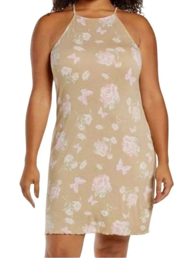 women's sleeveless knit lettuce trim hem dress D2 3119 Brand: BP. Fabric: viscose spandex Condition: new with partial tags Size: medium Color: beige pink Anna floral print Closure: pull on Girly classic chic trendy on trend flattering fit pretty fashion affordable fashion shop online closet staple women’s fashion dress dresses layering casual flowers multi color cottage femme flattering fairy prairie date night boho bohemian indie summer spring easter brunch Med Md 8 10 6 slinky NWOT BP. medium sleeveless knit Anna Floral print lettuce trim hem dress D2 3119