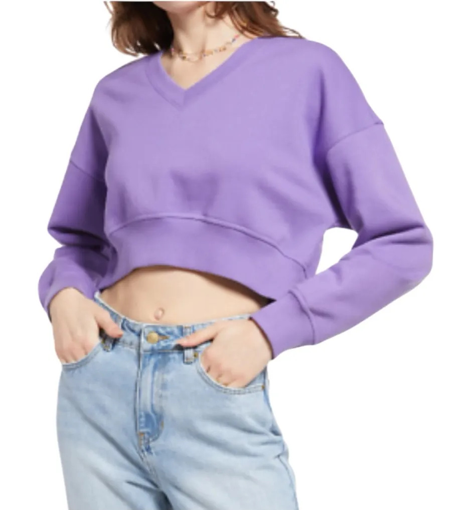 BP Womens Cropped Large V-Neck Crop Organic Cotton Blend Sweatshirt Purple Size large Cotton ble... Show more