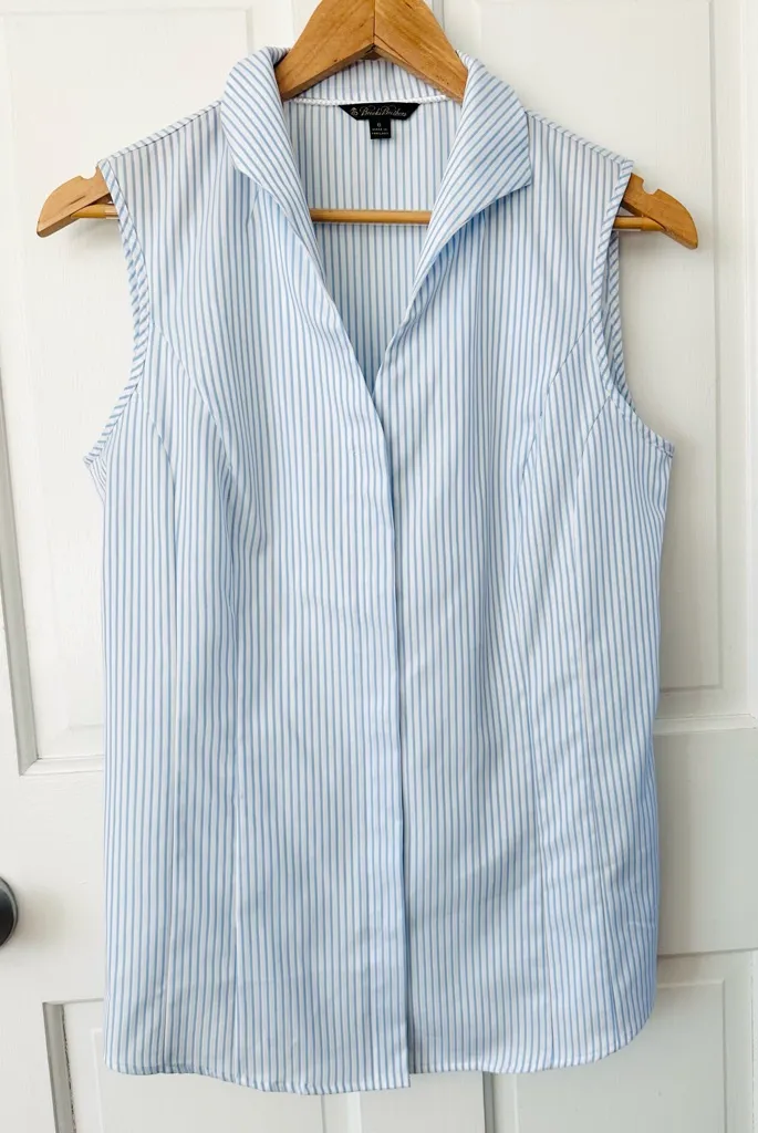 Brooks Brothers Women’s Sleeveless Button Up Shirt White & Blue Striped New with tags! Size 6 Approx... Show more