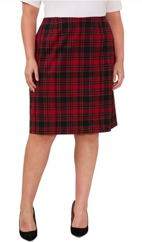 CeCe Red Black Plaid Pencil Skirt Condition: New With Tags - price tag may have sticker residue/peeling Size: 22W - please see measurements in photos Pencil silhouette Knee length Back zip Lined Plaid / Tartan Thanks for looking! U Tags: fall winter festive holiday Christmas party office career work wear