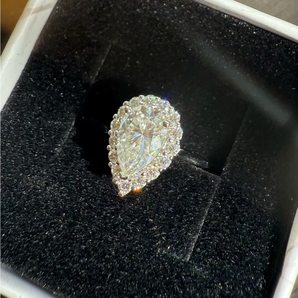 Free from lead and other harmful substances, it is hypoallergenic and safe for long-term wear. Brand-new S925 silver round 1.5 carat Halo ring, featuring VVS1clarity and D-color moissanite with exceptional cut. The fire and brilliance of moissanite surpass that of diamonds, creating a stunning sparkle. This ring is designed for durability, making it perfect for everyday wear and an ideal choice for weddings. With exquisite craftsmanship, it’s perfect for engagements or anniversaries. Available in US size 7 this ring is a beautiful expression of love and commitment. Past diamond’ PEN #diamond #engagement #bridal #s925