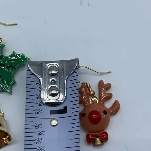 Be sure to check out my other items and bundle for a great deal. This is a pair of new asymmetrical Christmas earrings. One earring is a reindeer and the other earring is a mistletoe with a dangling bell. The bell actually makes a mild noise when it moves. These earrings are strictly fashion earrings and are not made of fine metals. They are unbranded. I have several other sets of Christmas earrings so be sure to check them out!