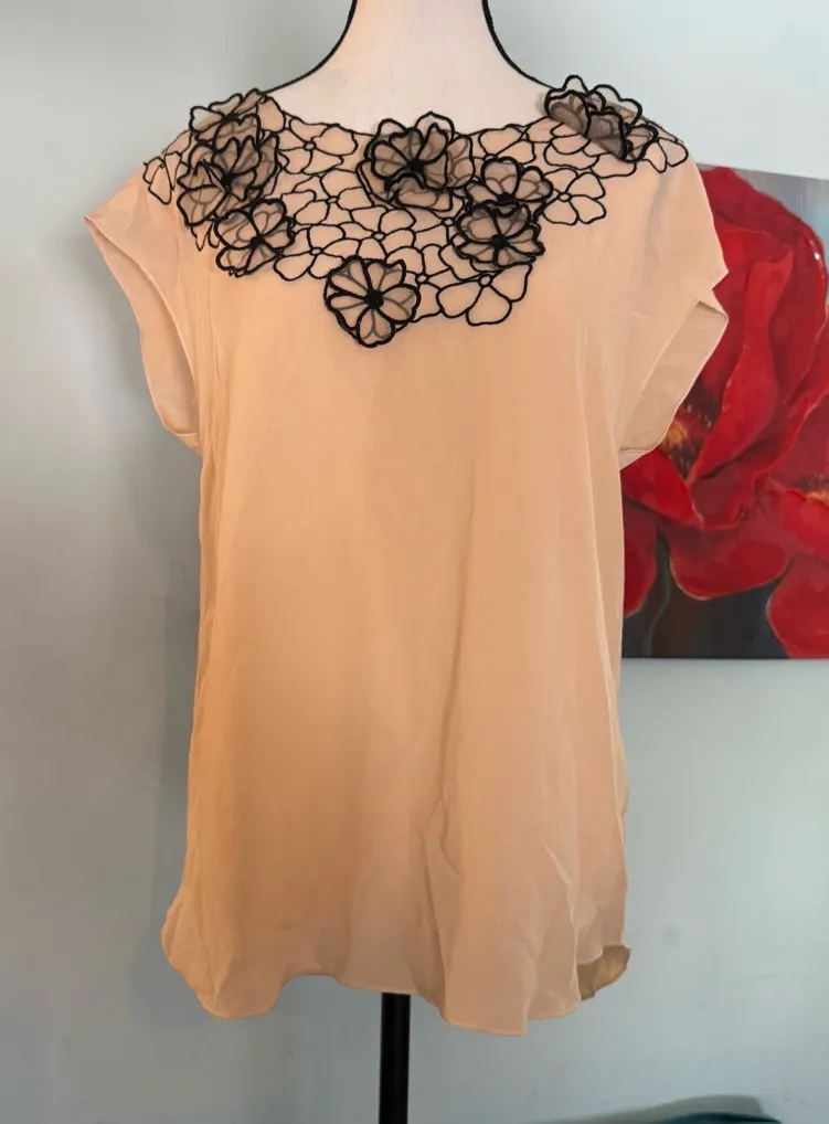 New Club Monaco Cream 3D Appliqué Floral silk Top blouse size Small S Rtl $170 Black - $25 New With Tags - From T