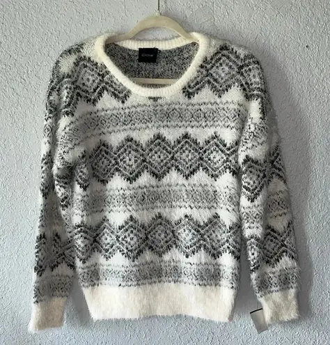 NWT New super cozy xs sweater cliche brand white with black pattern fuzzy soft comfortable sweat... Show more