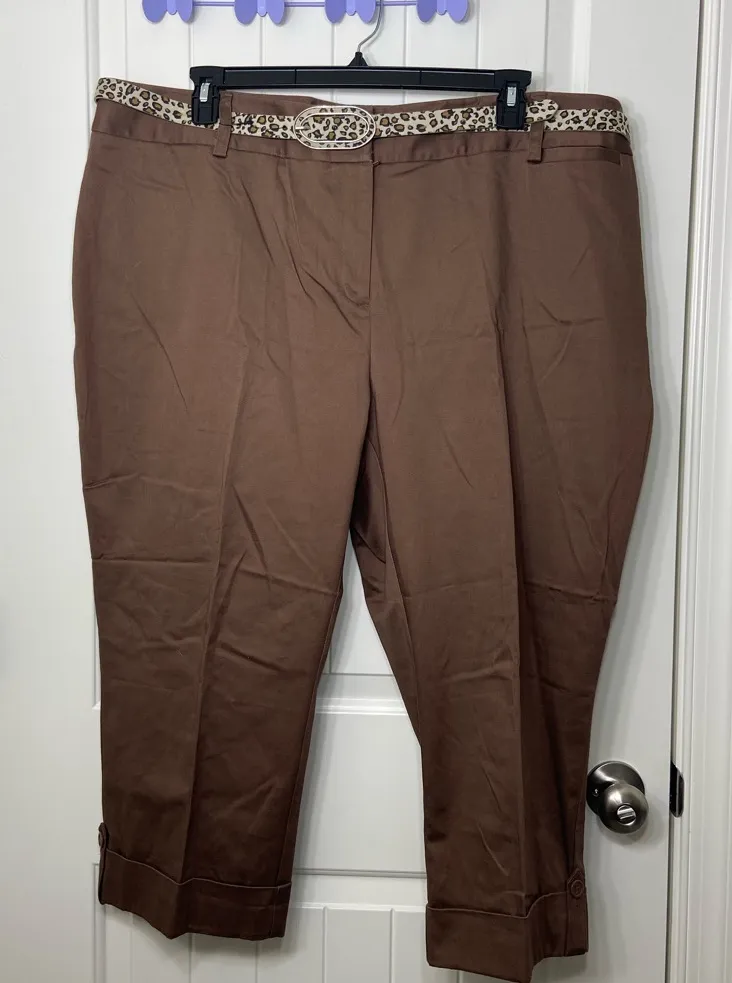 NEW Dana Buchman women’s classic coral sands leopard print‎ belt capri pants 22W Brown - $34 New With Tags - From Emily