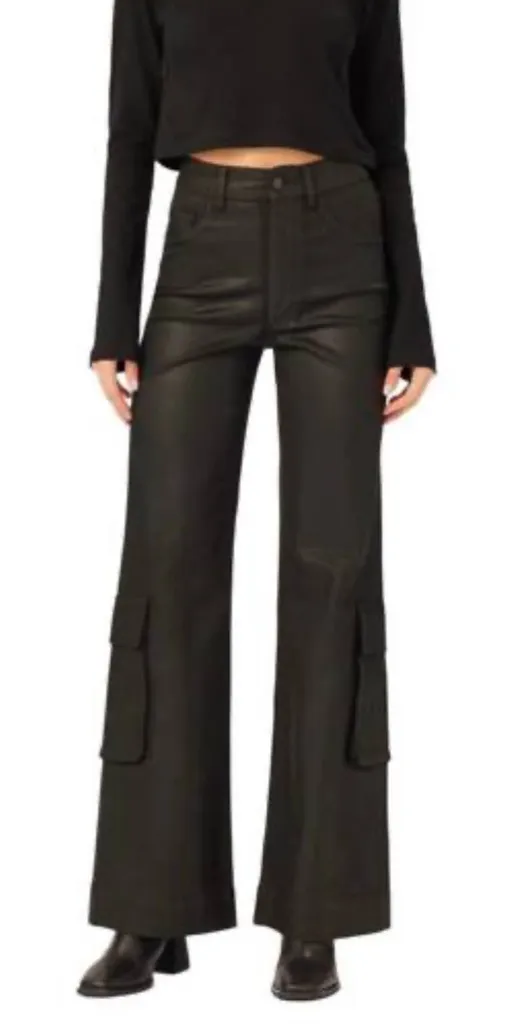 New without tags Composition: 50% Tencel‚Ñ¢ Lyocell, 49% Cotton, 1% Lycra - Description: Tuck your favorite tee into these high-waist jeans for a more casual-cool feel. These high-rise jeans are fitted through the waist and seat, tapering outward from the thigh for a wide leg. Made from wax-coated true black denim, they combine the softness of stretch denim with a leather-like appearance. The design includes cargo pockets below the knees, faux front pockets, black oxide hardware, tonal stitching, a wide clean hem, and a black back patch.