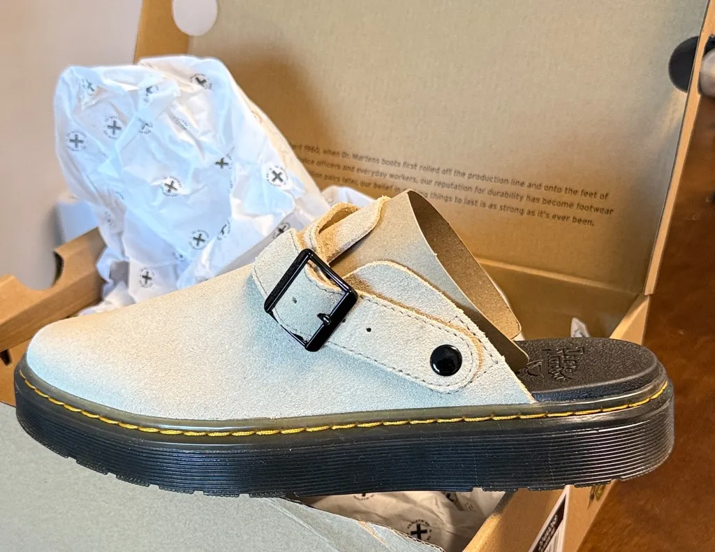 Dr. Martens Carlson Warm Sand Mules Unisex New in box. Never worn. Size: 10 Men or 9 Women Doc... Show more