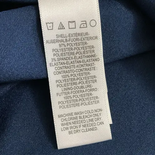 This stunning dress from Dress The Population is perfect for any occasion. The Corey dress features a beautiful Pacific Blue Navy color , with a flattering fit and flare style. The dress has a V-neckline, cap sleeves, and a midi length, making it suitable for both formal events and casual outings. The dress is made from a lightweight polyester blend crepe/chiffon fabric, which gives it a luxurious feel and a subtle pleated accent. The Corey dress also features a zip closure and is lined for added comfort. This dress is perfect for those who love designer and wedding styles, as well as those who enjoy a touch of princess and classic themes. It's available in size XXS and is machine washable for easy care. All measurements are taken flat and are approximate. Dress is new with tag