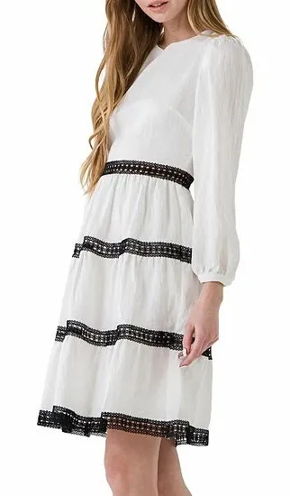 Features: Long sleeves, Knee-length, Black lace trim, A-line, Elegant, Ruffle, Pleated Measurement:... Show more