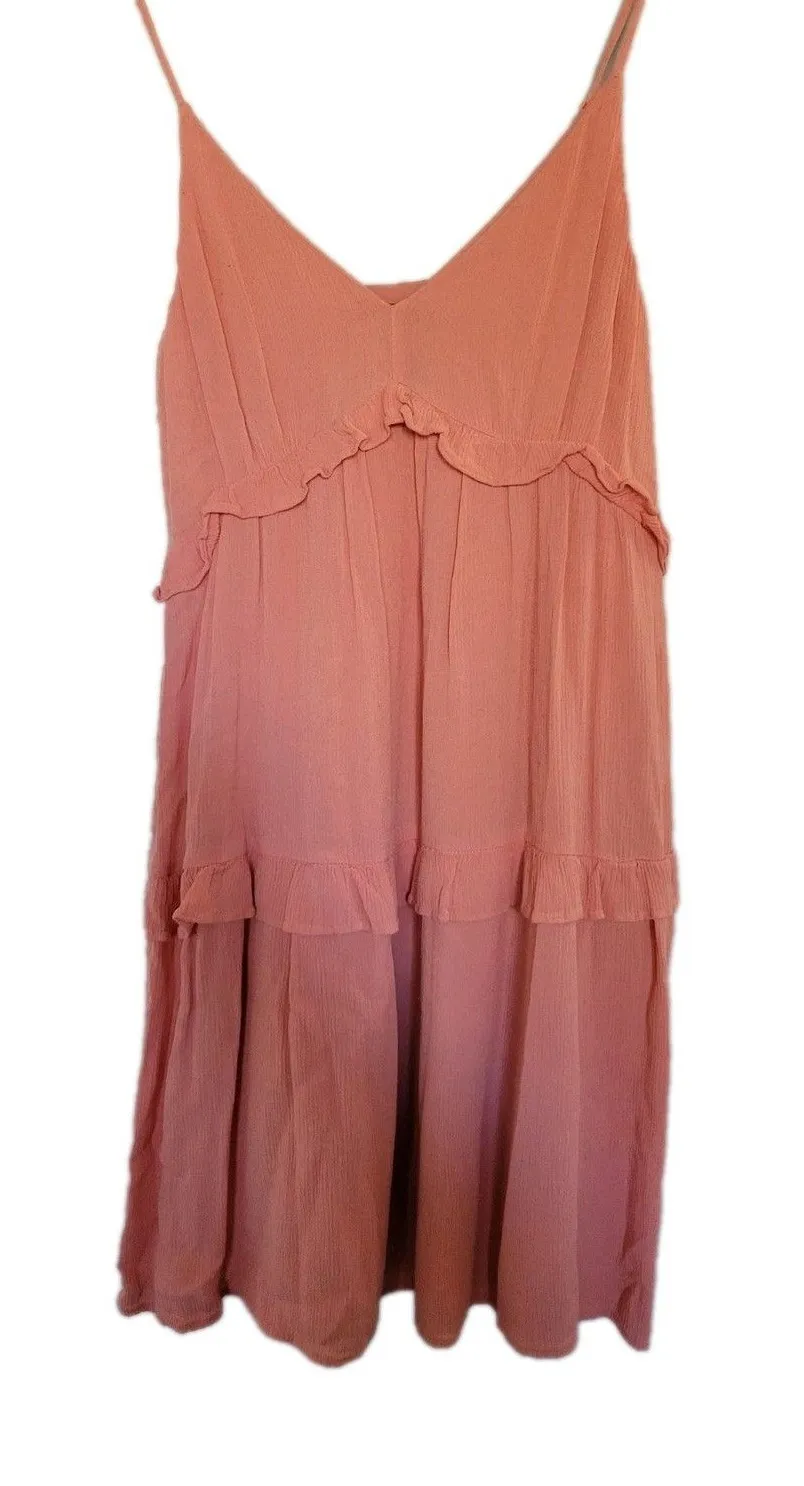 The NEW Express Tiered Ruffle Sleeveless Sun Dress in Peach Paisley, size XS, is a stylish and trend... Show more