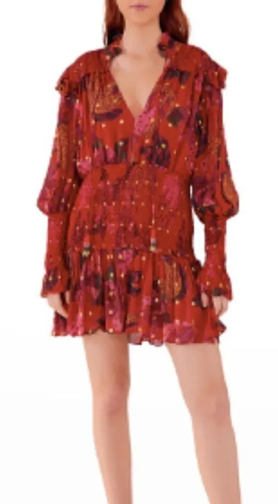 Farm Rio Banana Flowers Smocked Mini Dress A fancy-yet-cool statement to make all season long: the Banana Flowers Mini Dress features all the detailing to stand out from the basic crowd! It has smocked bodice, shoulders & cuffs to hug you in the right places, and the length is ideal to keep showing some legs (if it gets cold, warm tights and boots are very welcome!). • Easy fit • V neck with ties and beaded tassels • Smocked bodice, shoulders, and cuffs • Lurex dots details • Long sleeves • Invisible zipper at side seam 90% VISCOSE 10% POLYESTER Women's Size Small new with tags