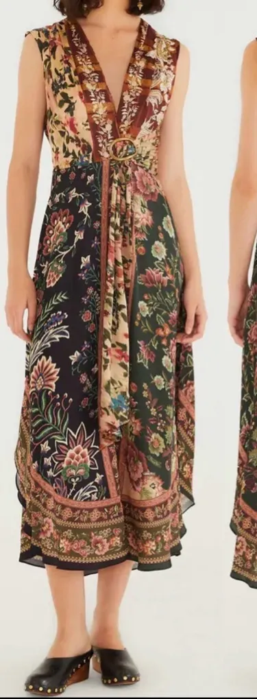 New without tags Size M Embrace the gentle allure of the Mixed Winter Garden maxi dress, where rich floral patterns bloom across deep, earthy hues. Crafted in eco-conscious LENZING® ECOVERO® viscose, its sleeveless silhouette and plunging V neckline create a graceful flow, enhanced by a subtle waist belt that sculpts and softens your shape. This dress invites you into a warm, playful world of nature-inspired elegance with every step. Closure: Invisible Zipper At Center Back Sleeve type: Sleeveless 54% VISCOSE 46% RAYON Care Instructions HAND WASH SEPARATELY, DO NOT BLEACH, DO NOT TUMBLE DRY, LINE DRYING, IRON AT LOW HEAT, DO NOT DRY CLEAN Tags: Influencer Statement Piece, bridesmaids, black tie, gala, formal wear, prom, homecoming, pageant, wedding guest, bridal, wedding, bridal shower, mother of the bride, mother of the groom, rehearsal dinner, bachelorette, pageant, prom, homecoming, wedding, engagement photos, special occasion, little black dress, gala, Graduation, holiday parties, pageant, Quinceañera, formal, black tie, cocktail, Maid of honor, Special occasion, Designer Event, Dinner gown, Photo shoot, Formal event, Celebrity Red Carpet Luxe Luxury, Holiday, Vacation Resort wear, Beach dress, Spring, Summer, Fall, Winter, viral