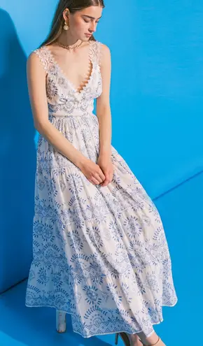 NEW Flying Tomato White Blue Lace Tiered Dress Size large New without tags Grecian Vacation Resortw... Show more