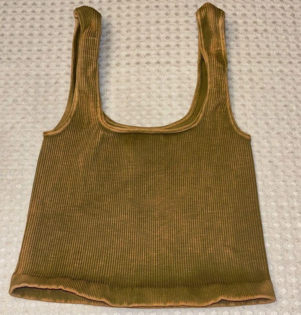 NEW! Free People HAPPINESS RUNS SQUARE NECK Ribbed Crop Top XS/S Gold Green Tan - $30 (25% Off Retail) - From Jennifer