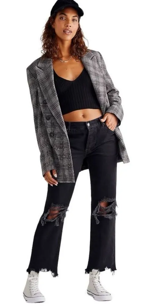NEW Free People Maggie Mid Rise Distressed Wide Leg Jeans in Washed Black Sz 27 *New without tags A... Show more