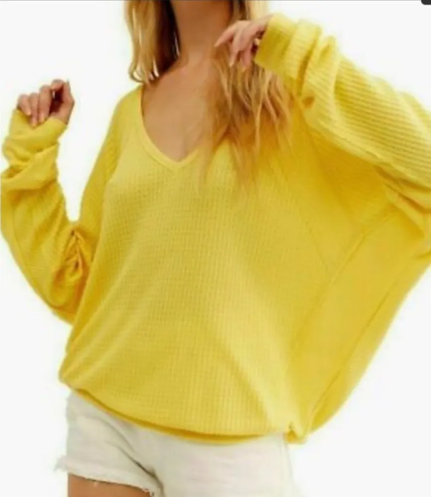 New with tag Free People We the Free Santa Clara Yellow long sleeve Thermal Knit Top size small Over... Show more