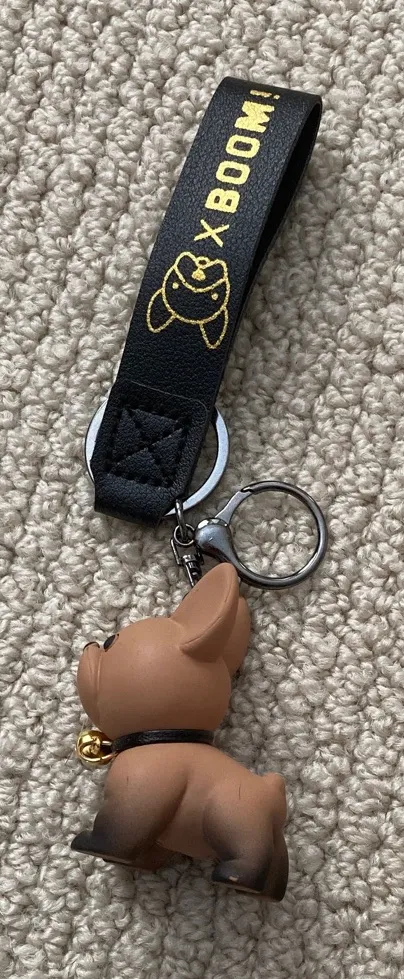 NEW French Bulldog Brown Dog Bag Charm Keychain with Black Strap NWOB Brand new without the packaging brown French bulldog bag charm Super cute and comes with a brown strap that says BOOM! Feel free to ask questions! Cute brown dog keychain with a black strap. Perfect for adding charm to your keys.