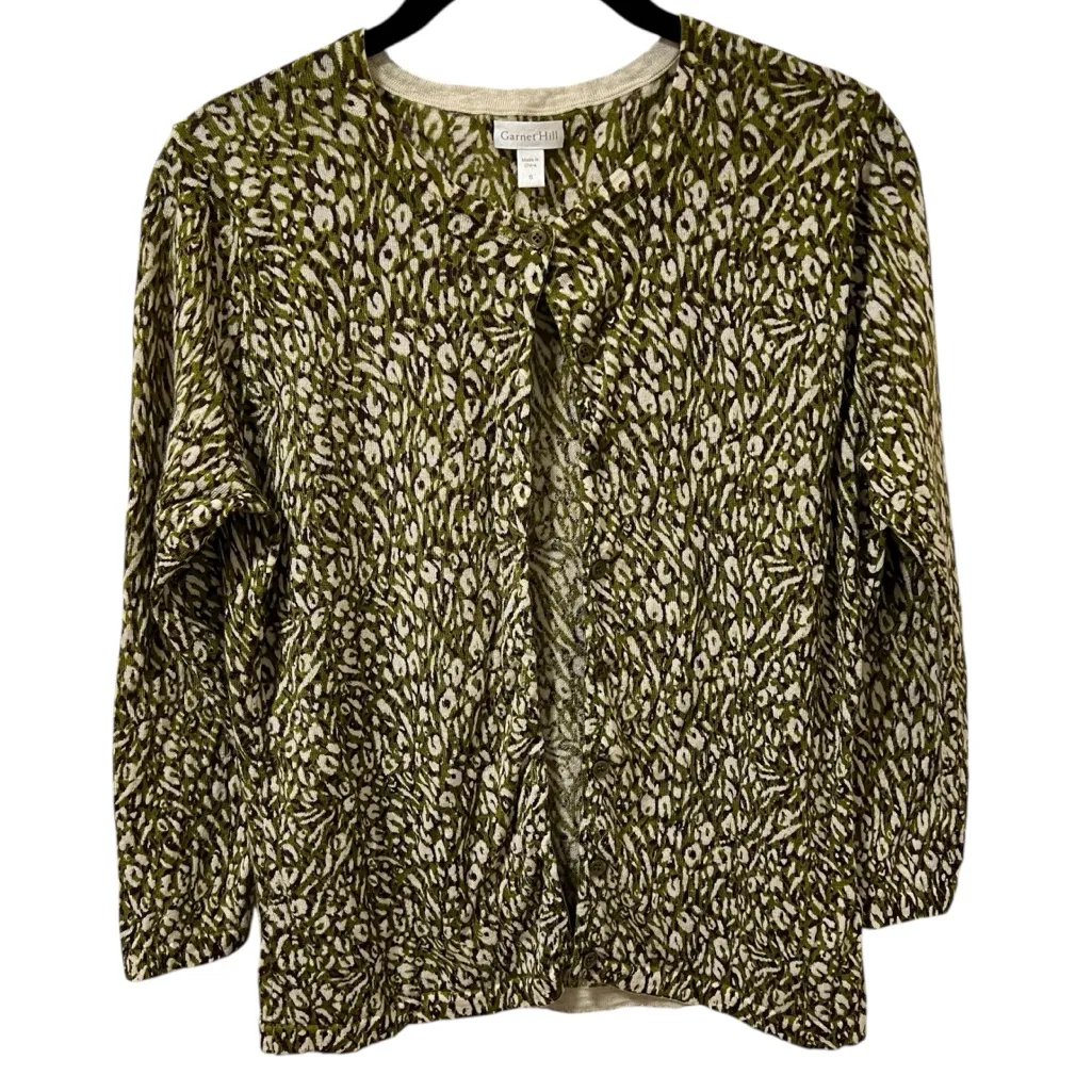 New without tags Garnet Hill signature merino wool cardigan. Slim, flattering fit with 3/4 sleeves. Finely knit in a soft eco wool that can be worn year-round. Abstract animal print. Approximate measurements: Length: 21” Chest: 17” Sleeve length: 18.5”