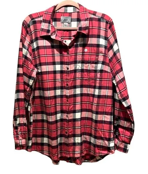 New G.H.Bass Women’s XL Tunic Style Flannel Button Down Shirt Pink Navy Size XL 23.5” underarm to... Show more
