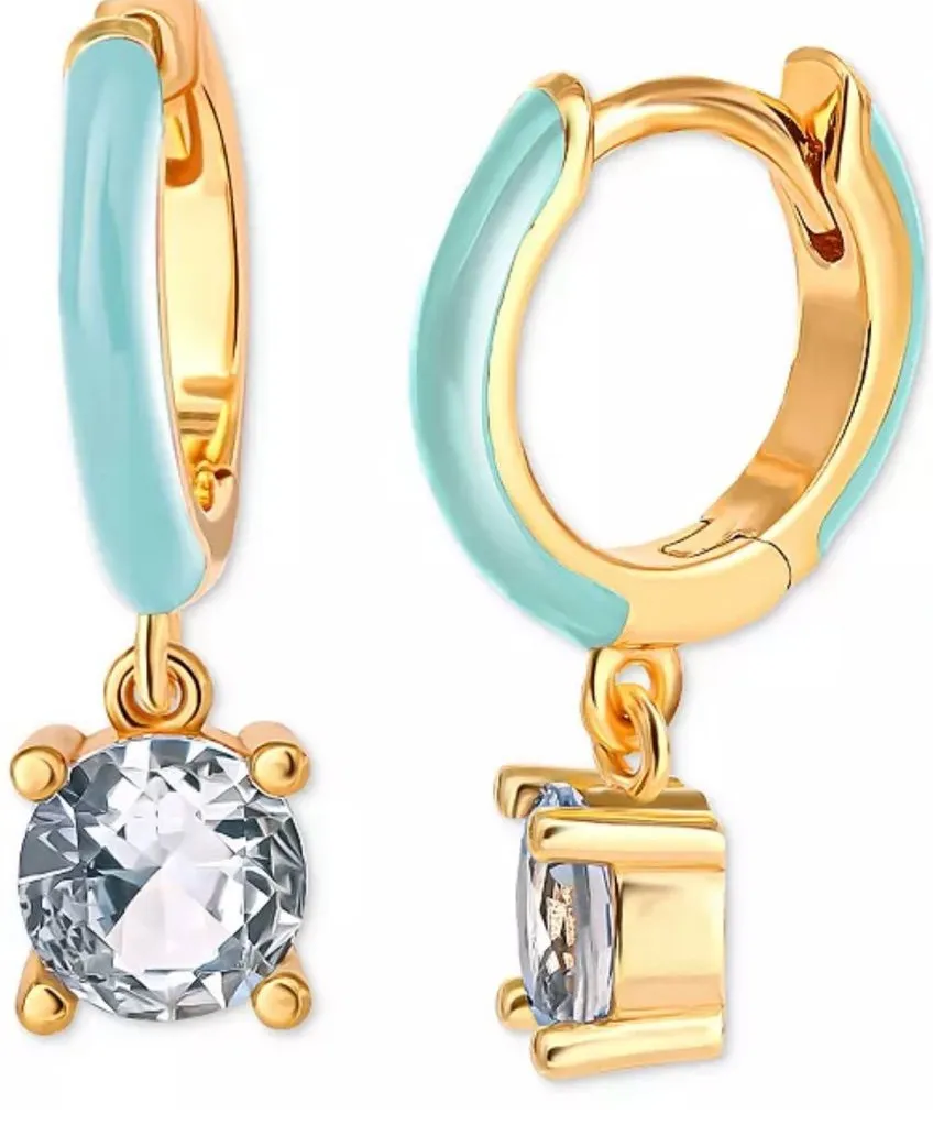 Soothing and sophisticated blue hues radiate from these cubic zirconia and blue enamel dangle drop earrings from Giani Bernini. Set in 18k gold-plated sterling silver Approx. drop: 2/3" Hinge hoop closure