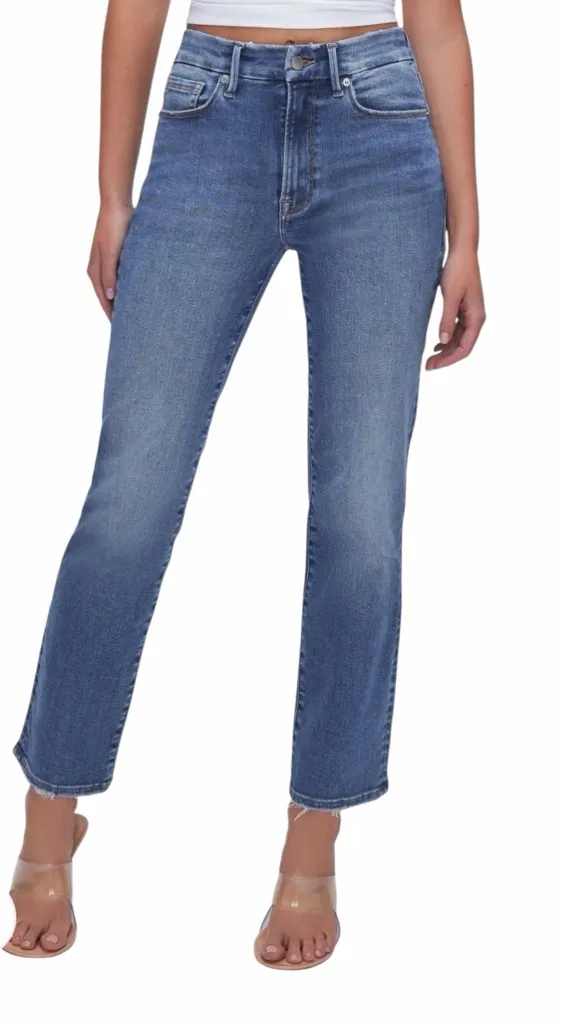 NEW Without Tag Good American Always Fits Good Leg Cropped Straight Denim Jeans size 4 27 Has the ba... Show more
