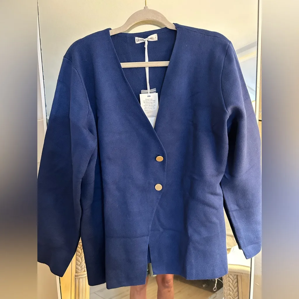 NEW Grace Karin Blue Classic Career Sweater Cardigan Gold buttons XL - $30 New With Tags - From Mackooniebug