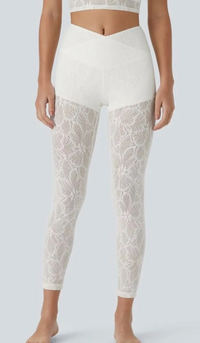 New Halara High Waisted Crossover 2-in-1 7/8 Lace Casual Leggings Women's XS White - $45 New With Tags - From Twisted