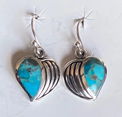 NEW Heart Turquoise and Sterling Silver Dangle Earrings Blue - $40 New With Tags - From Corazon