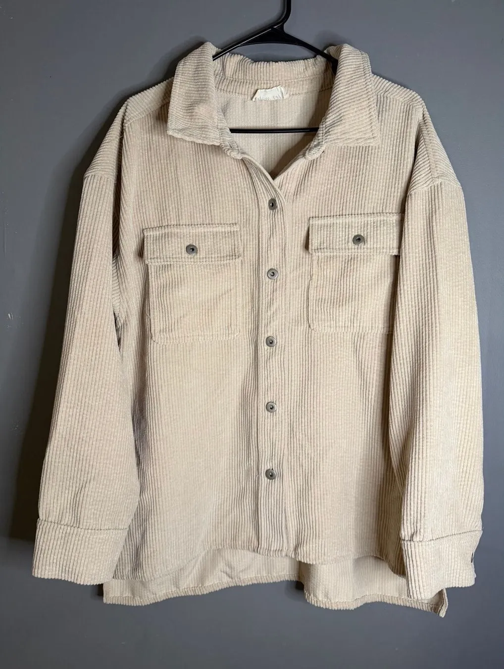 New In Boutique Cream Beige Button Up Corduroy Shacket Size Large - $17 - From Nicole