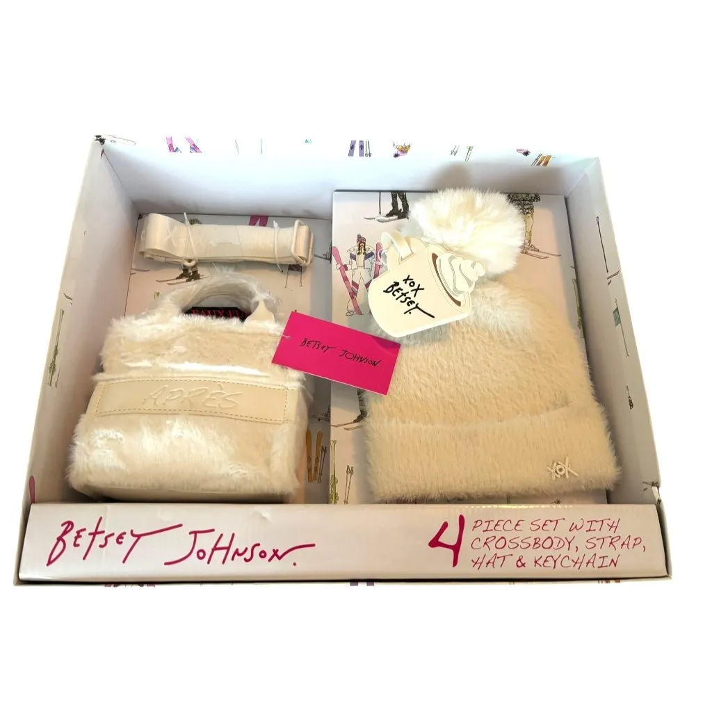 This set combines functionality and style for cold weather. Includes a faux fur hat, crossbody bag w... Show more