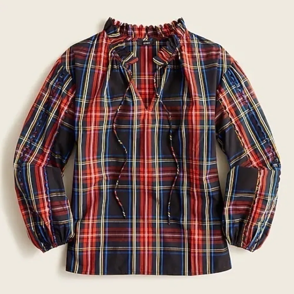 J.Crew Scalloped Tie Neck Stewart Tartan Plaid Poplin Shirt