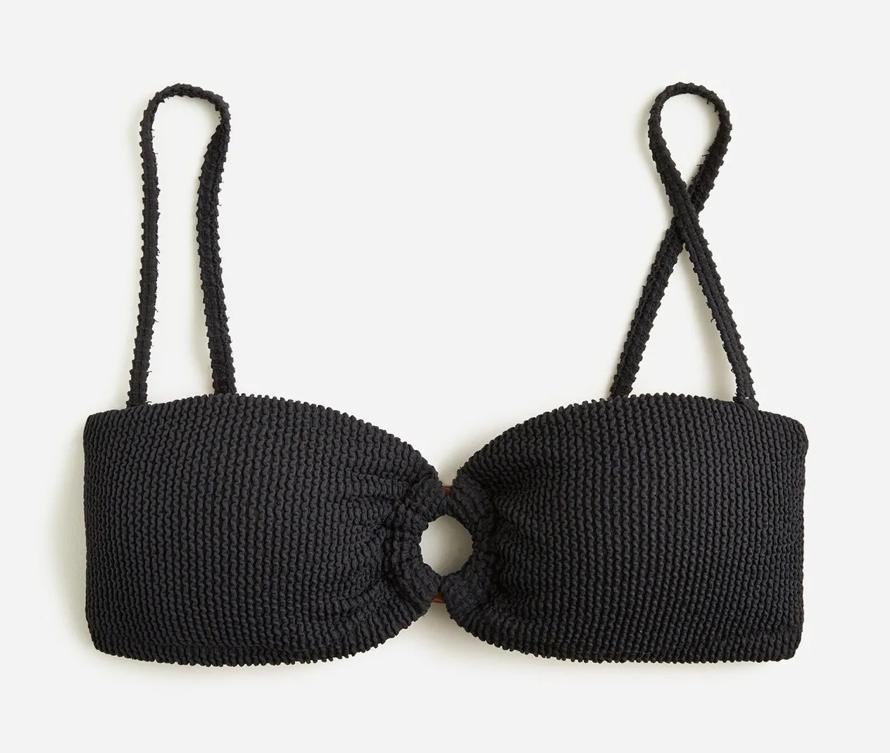 The product is a new J.Crew black heritage textured Oh-ring bandeau bikini top in size XXL with a ha... Show more